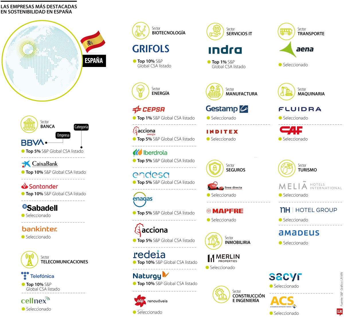 Algunas empresas han sido galardonadas por el S&P Global como miembros del anuario de sostenibilidad