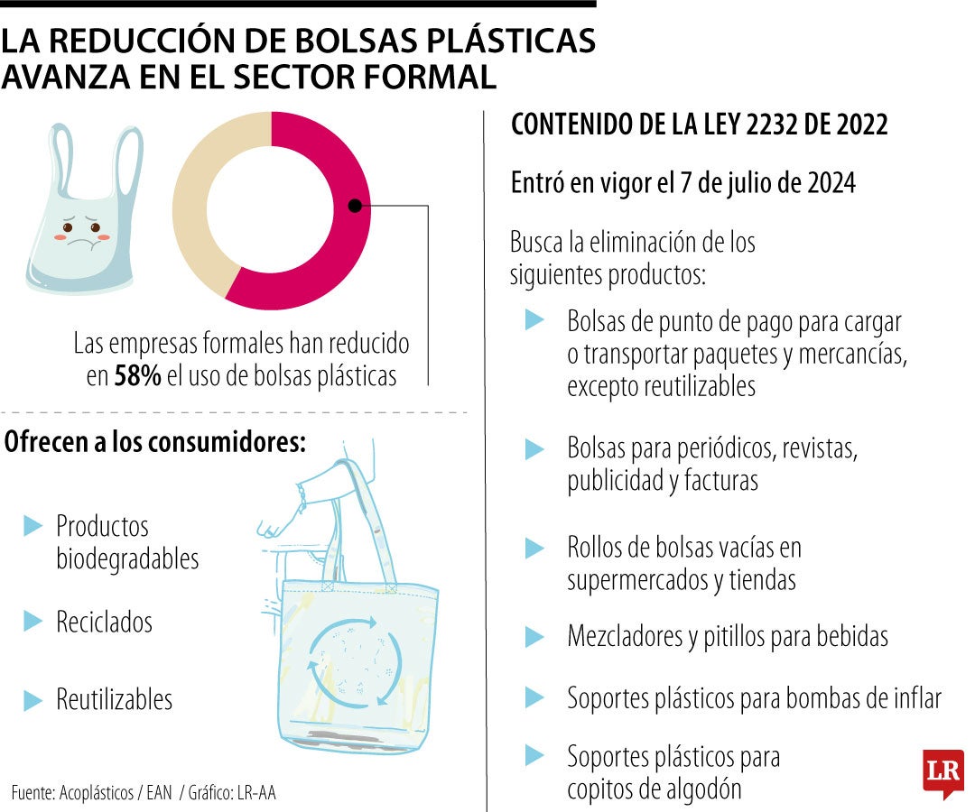 La prohibición de bolsas plásticas en establecimientos comerciales es uno de los elementos calve de la Ley 2232 de 2022