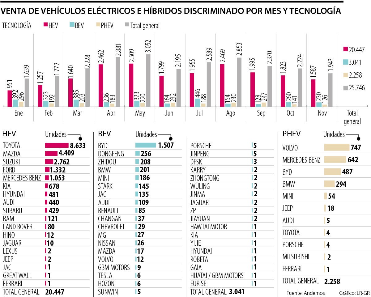 A noviembre se han comercializado 25.746 vehículos, tanto eléctricos como híbridos, una cifra que hoy nos permite ser uno de los países más avanzados de la región
