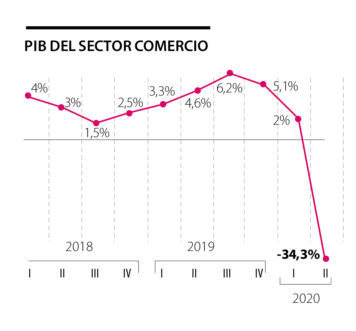 Para el comercio, con caída de 34,4%, no hay pronta solución