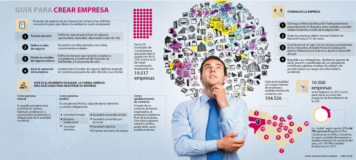 Si el interesado no tiene clara la idea de negocio, la CCB hace un proceso de acompañamiento para estructurarla. El siguiente paso es diseñar el modelo de negocio. En esta etapa se definen los recursos que se requieren y se analiza a la competencia, el potencial del mercado, las habilidades que se necesitan y la propuesta de valor de su modelo de negocio.