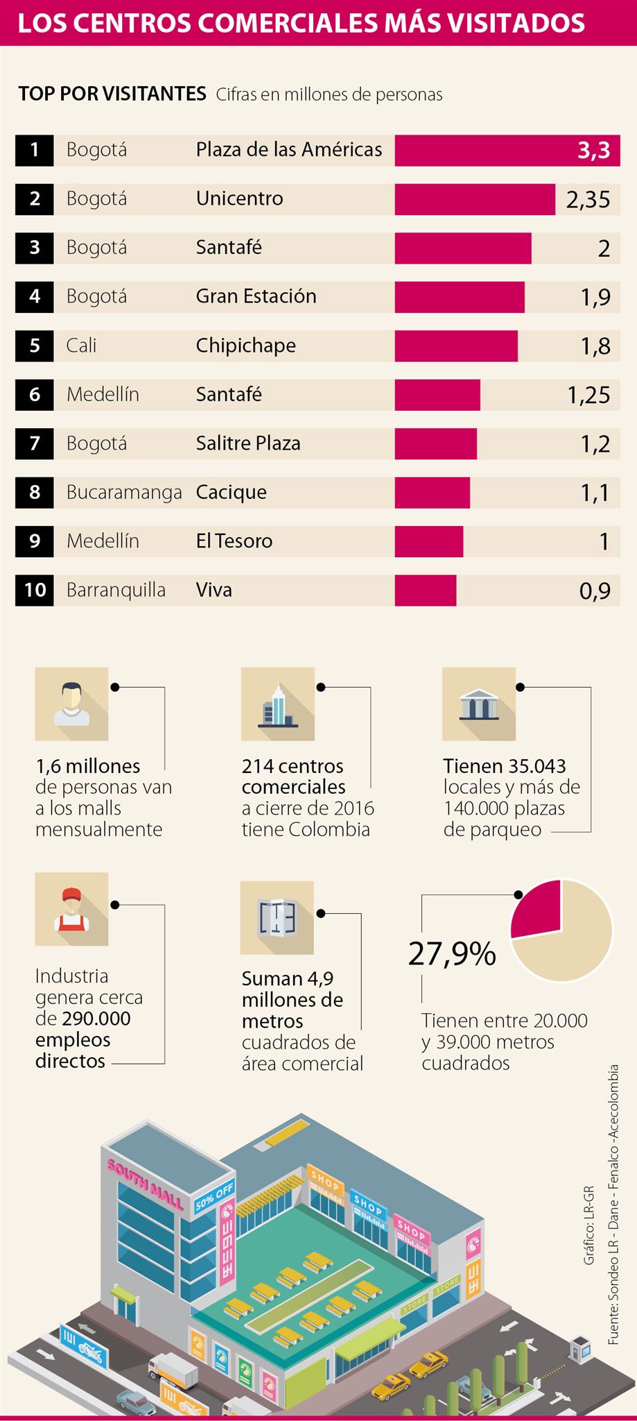 A la cabeza está el centro comercial Plaza de las Américas, que reporta 3,3 millones de visitas cada 30 días. Le sigue Unicentro, con dos 2 millones de personas y para temporada alta puede llegar a los 2,8 millones.
