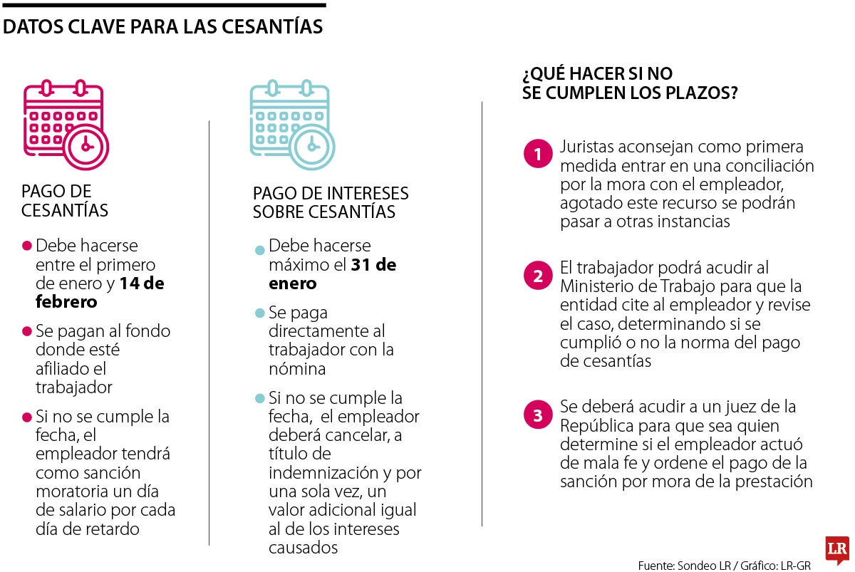 “La sanción más importante por incumplir el pago de cesantías es la moratoria por no pago de cesantías a tiempo, establecida por numeral 3 del artículo 99 de la Ley 50 de 1990. Por no pago de intereses de cesantías es el numeral 3 del artículo 1 de la Ley 52 de 1975 que dobla el pago del mismo”, anotó Carrión.