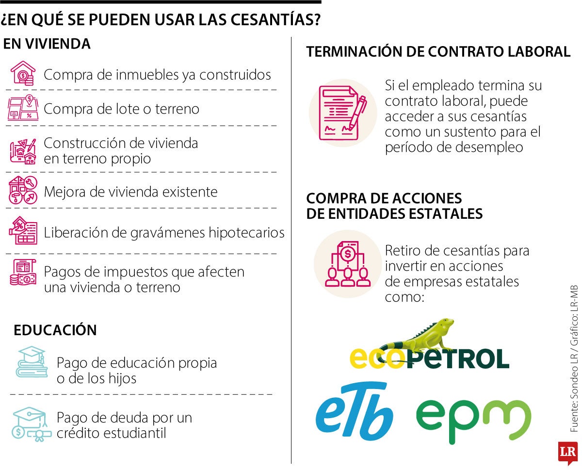 El marco normativo contempla, además, el uso de las cesantías para la liberación de gravámenes hipotecarios, el pago de impuestos que afecten la casa o el terreno edificable y la adquisición de títulos de vivienda dentro de planes de construcción contratados con entidades oficiales o privadas.