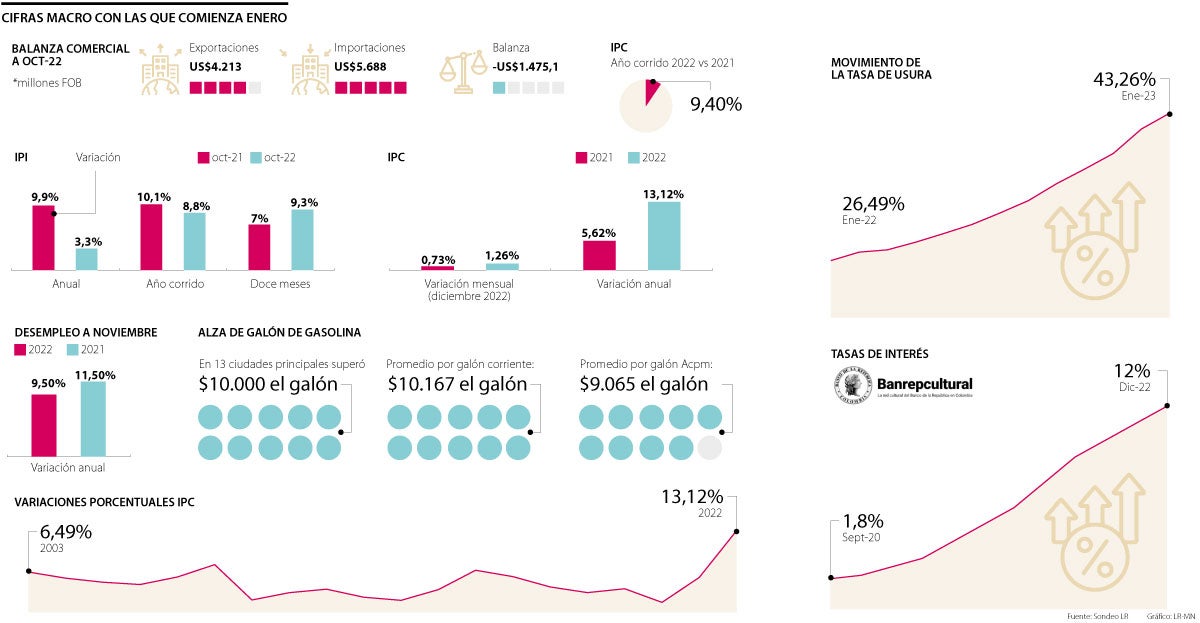 En cuanto a la inflación, 2022 cerró con una cifra anual de 13,12%, la más alta desde 1999, impactando directamente la capacidad de consumo de los hogares.
