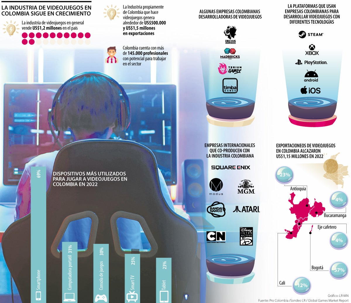 En el país actualmente la industria de videojuegos se compone de 80 empresas que se concentran en Bogotá, Cali y Medellín
