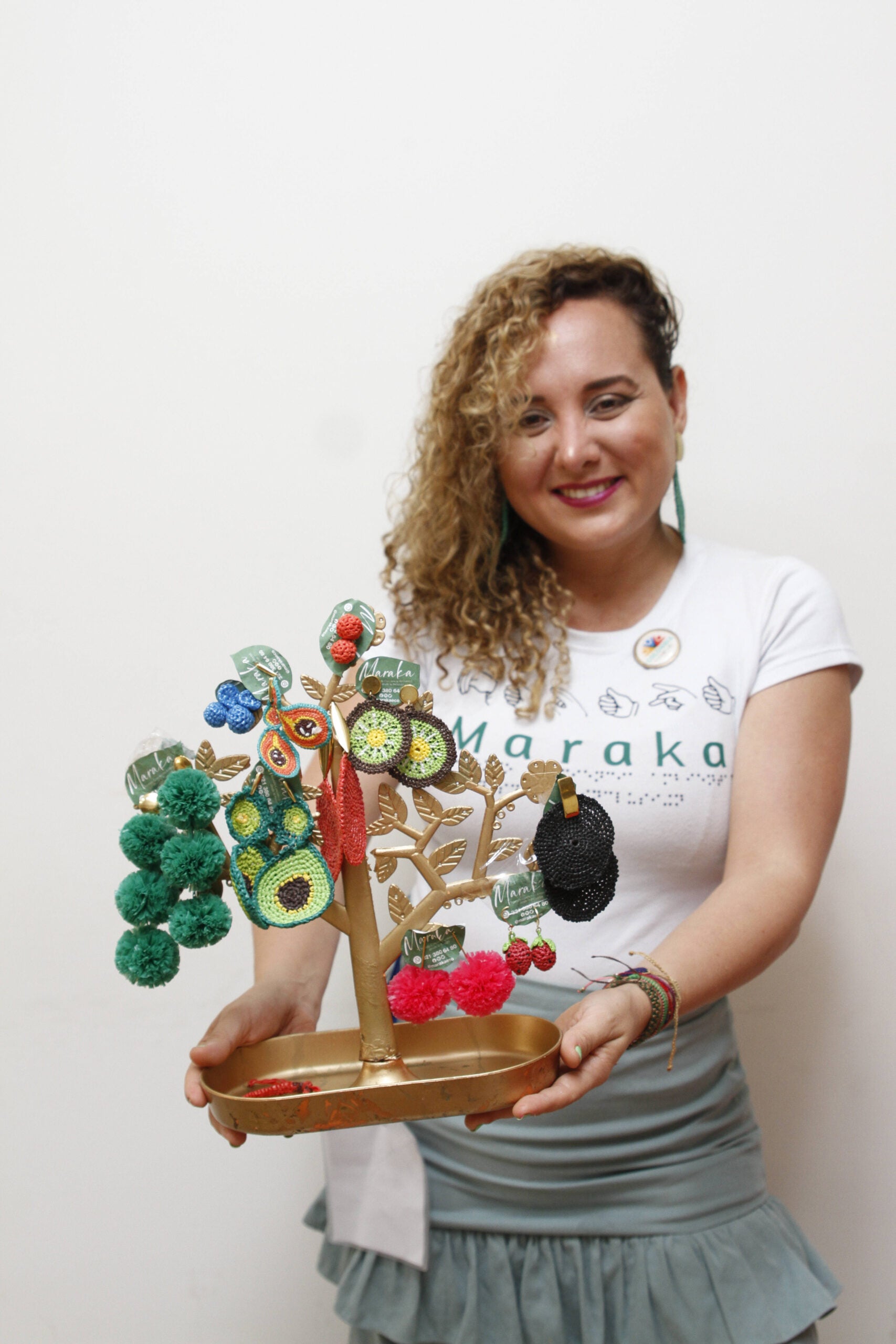 En el puesto 119 de la feria de Cartagena de Indias, sorprende el nombre con que Leidy Viviana bautizó su emprendimiento laboral y artístico: Maraka, y explica que se trata de una palabra que en lengua muisca tiene varios significados: Ma es la madre tierra. Ara son las aves guardianas de la lengua en la tierra, las cotorras. Aka es el reino de lo celeste. Maraka o capachos es un amuleto de buena suerte, es bienaventuranza, pero toda palabra es la conjunción y armonía entre cielo y tierra. A esas veinte mujeres, algunas jóvenes, madres cabeza de hogar y mujeres de la tercera edad, también se integran muchachos de la región que desean seguir el camino del tejido y personas con discapacidad motora. Hay sordos que, gracias a este colectivo, aprendieron a leer los labios y a tejer.