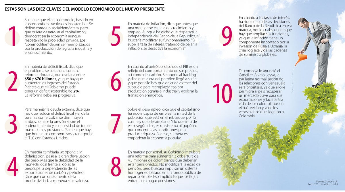 No se trata de un asunto menor, ya que la estatal petrolera acaba de revelar que, en los primeros seis meses del año, generó ingresos por $76,4 billones y una utilidad total de $17,1 billones, más que la cifra de 2021, recursos claves para cualquier Gobierno. Pero, además de su crítica y oposición a la economía extractiva, ¿cuáles son los postulados claves en materia de economía de Gustavo Petro tras su llegada a la Presidencia de la República (los Petronomics)?