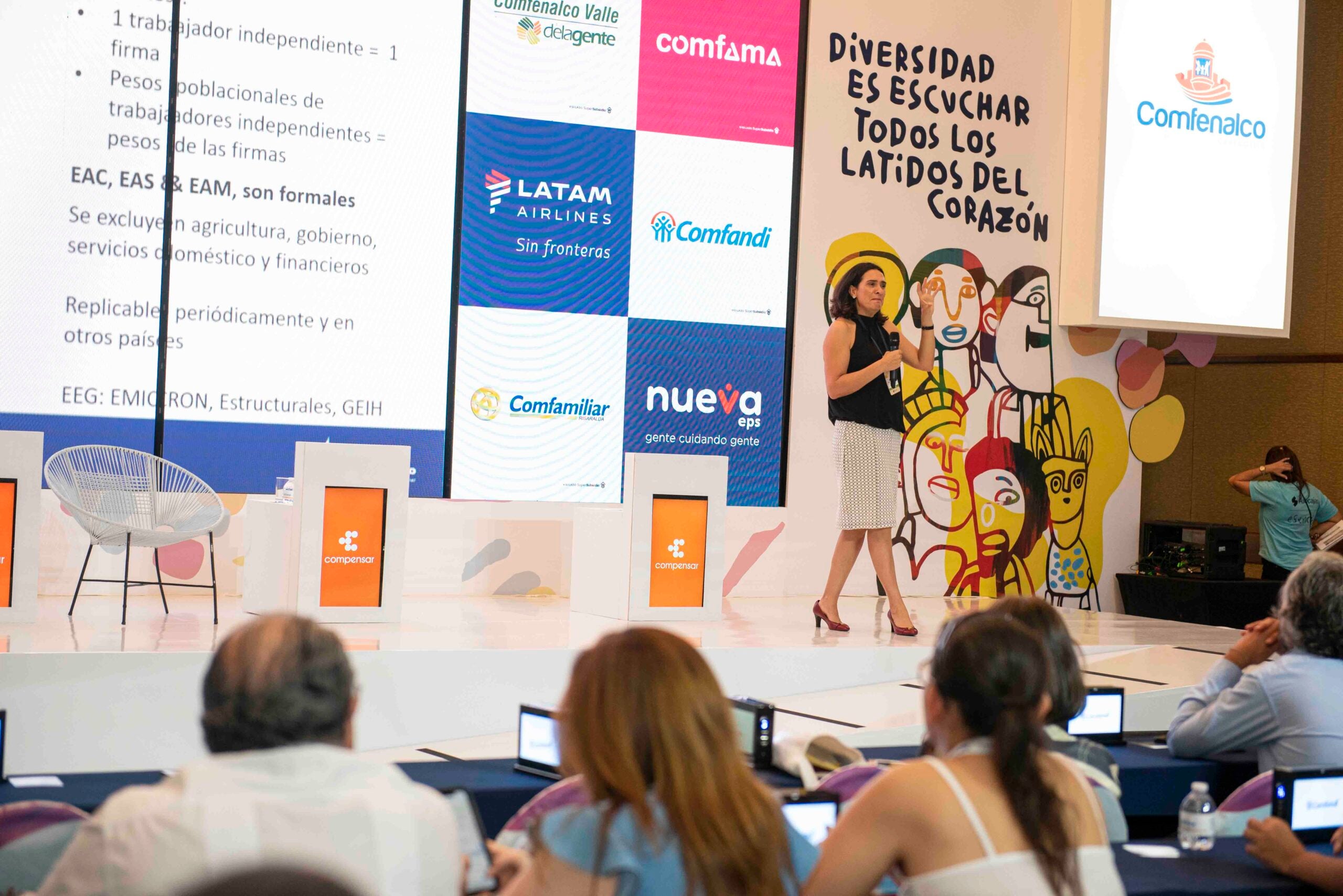 Posterior a ello, la economista e investigadora Cristina Fernández Mejía se dirigió a los asistentes para hablar de los temas asociados a la informalidad empresarial por medio de su conferencia ‘Inclusión y mercado laboral‘.