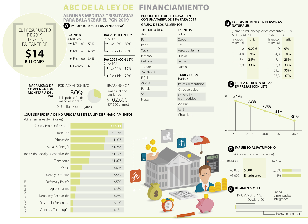 Aunque los principales líderes gremiales del país coinciden en que la ley de financiamiento que radicó la semana pasada el Gobierno busca reactivar la economía a través del alivio tributario a las empresas, algunos como los agricultores o los constructores siguen defendiendo la idea de que gravar 80% de los productos de la canasta familiar con un IVA de 18% para 2019 y de 17% para 2020 frenaría el consumo de los hogares y resentiría el aparato productivo.