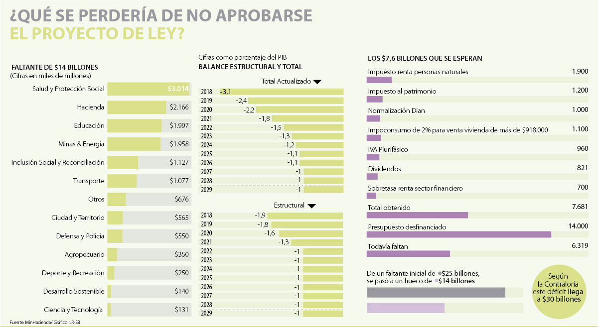 Además, sin un ambiente para golpear el bolsillo de la clase media, los únicos recursos que alcanzaría la ponencia llegarían a apenas $7,6 billones, dejando como única alternativa lo que se quería evitar: un recorte fuerte al gasto, de más de $6 billones, que, si se mantiene el discurso de Carrasquilla, se centrará en varios programas sociales, que son los que aparecen desfinanciados.