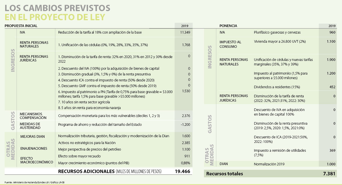 Del articulado inicial, que esperaba recaudar hasta $19,4 billones en 2019 se pasó a una cifra más modesta de $7,5 billones, es decir, que para el próximo año habría un recorte del gasto social. “No vamos a renegar de los principios orientadores básicos como son el estricto cumplimiento de la regla fiscal”, dijo el ministro de Hacienda, Alberto Carrasquilla.