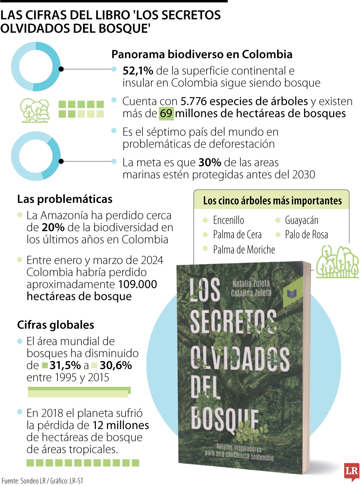 Esos árboles de gran importancia para el ecosistema del país, de los cuales se habla en el libro, son: Encenillo, Palma de Cera, Palma de Moriche, Guayacán y Palo de rosa.