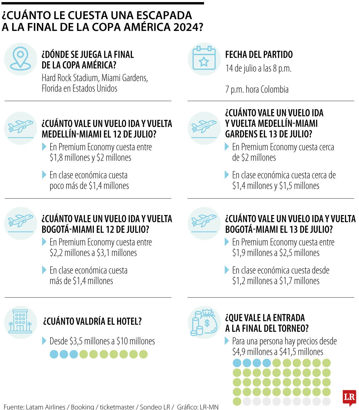 Es por eso que varios pueden ir pensando en empacar maletas para acompañar al combinado nacional; además, el espectáculo de las selecciones más antiguo del mundo tiene mucho que ofrecer. Por esa razón, aquí le presentamos los costes que podrá encontrar si quiere ir a la final del torneo que será disputado el 14 de julio en el estadio Hard Rock en Miami Gardens en Estados Unidos.