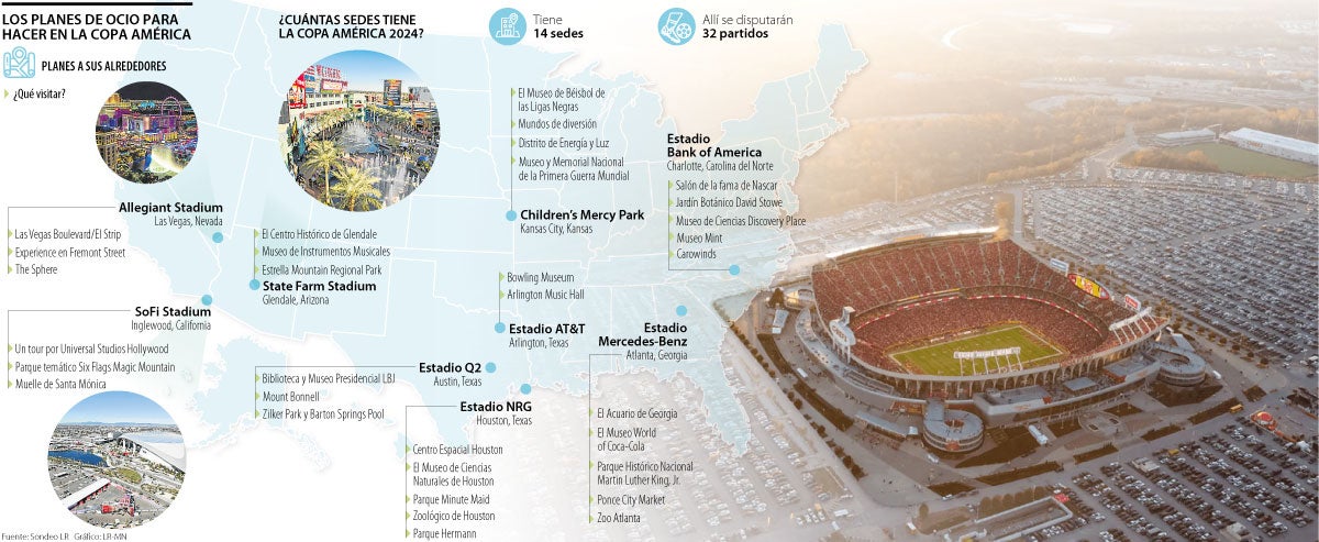 Así que si usted es uno de los que armó viaje y está en Estados Unidos, sede de la competición, acá le traemos una guía completa con planes de ocio para hacer en cada una de las sedes (ver gráfico).
