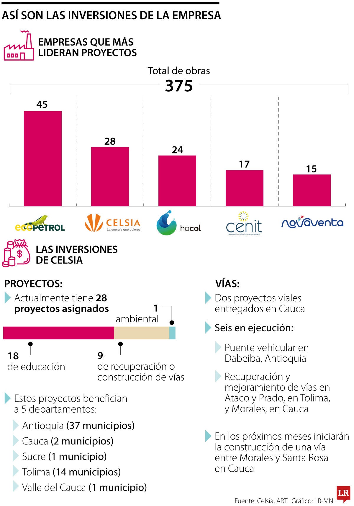 Una de las empresas más activas en el programa de Obras por impuestos ha sido Celsia, la compañía de energía de Grupo Argos que, con 28 proyectos, es la segunda, tras Ecopetrol (45), con el mayor número de inversiones dentro del programa, que con corte al segundo trimestre de 2024 suma 375 obras por $2,6 billones.