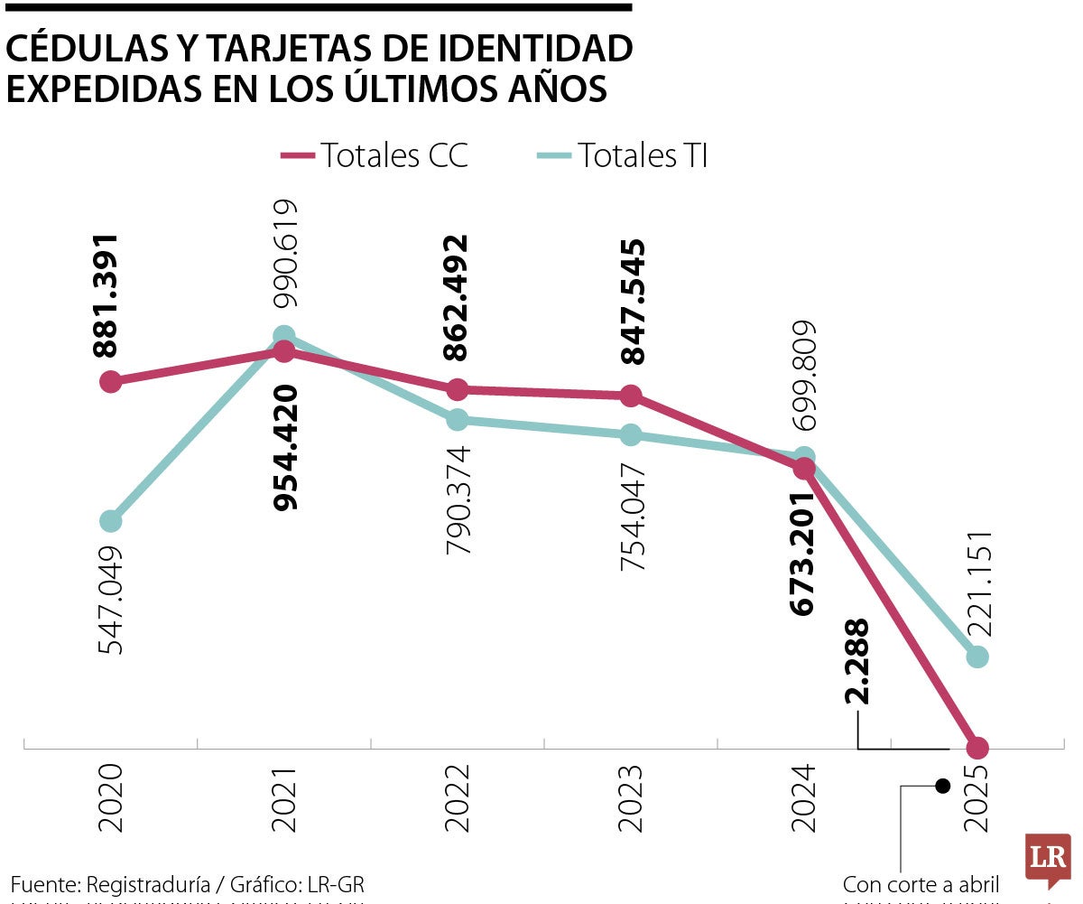 Lo que antes era un trámite masivo y constante, hoy muestra señales de desaceleración. Desde 2020, las solicitudes de cédula de ciudadanía por primera vez han caído 23,6%, una disminución que refleja cambios profundos en la dinámica poblacional y que guarda una estrecha relación con la baja en los nacimientos registrada en la última década.