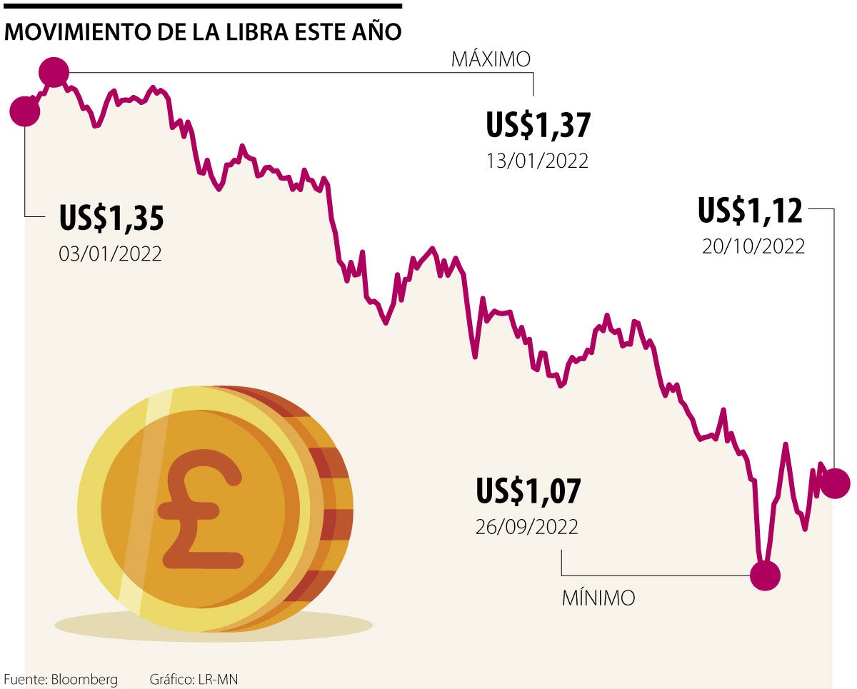 Aunque en lo corrido del año, la divisa británica ha caído 16,8%, este jueves el tipo de cambio de la libra esterlina y el rendimiento del bono soberano de Reino Unido a 10 años en los mercados de deuda repuntaron tras el anuncio de la dimisión de la primera ministra británica, Liz Truss, “después de un mandato breve y caótico que la vio anunciar un paquete masivo de recortes de impuestos antes de deshacer la mayor parte frente a una derrota del mercado”, según Bloomberg.