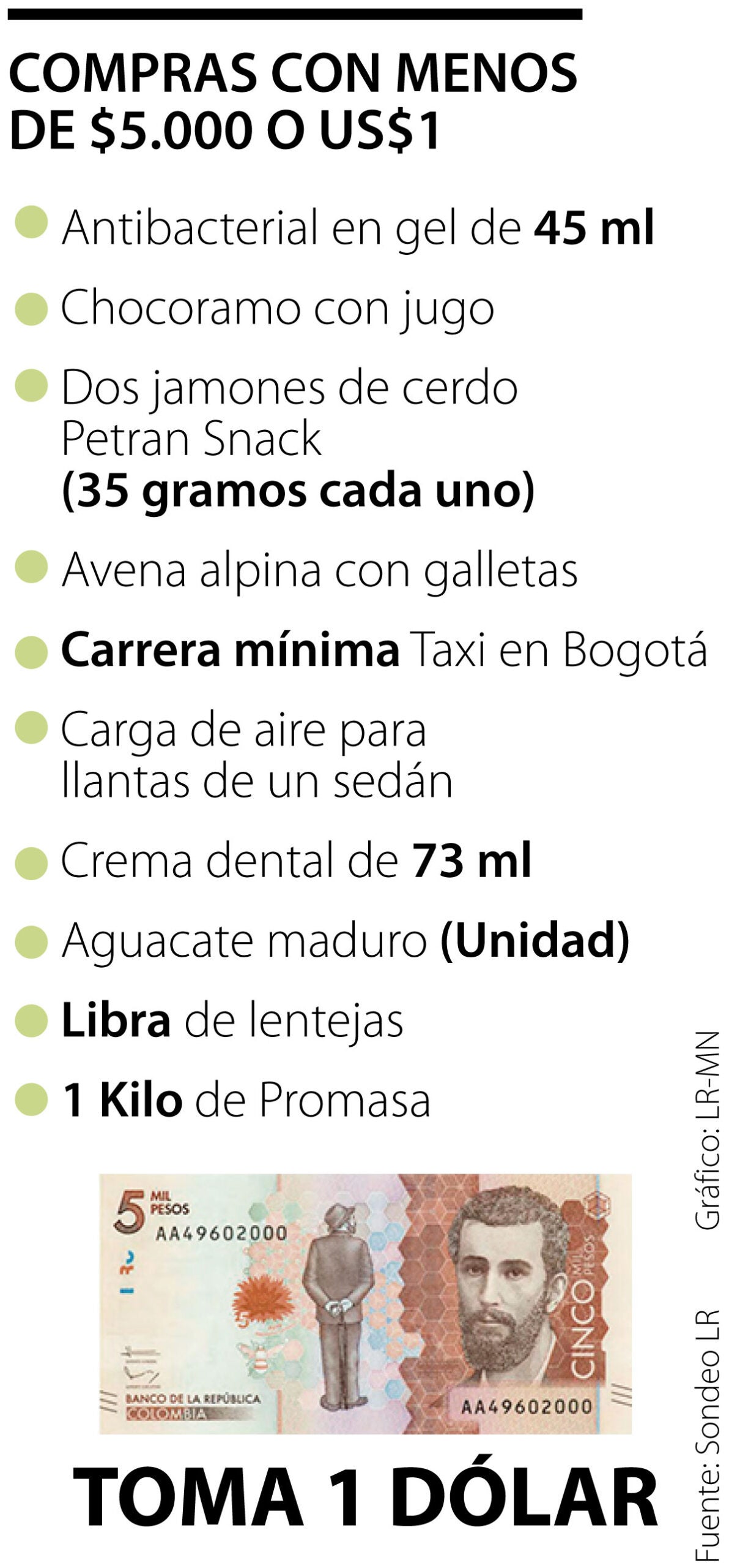 Por eso, en días en los que aparece el famoso meme de “tome un dólar” y de fondo se ve el billete de $5.000, LR hizo un ejercicio entre plataformas de domicilios y páginas de supermercados para ver qué había debajo de este nivel.