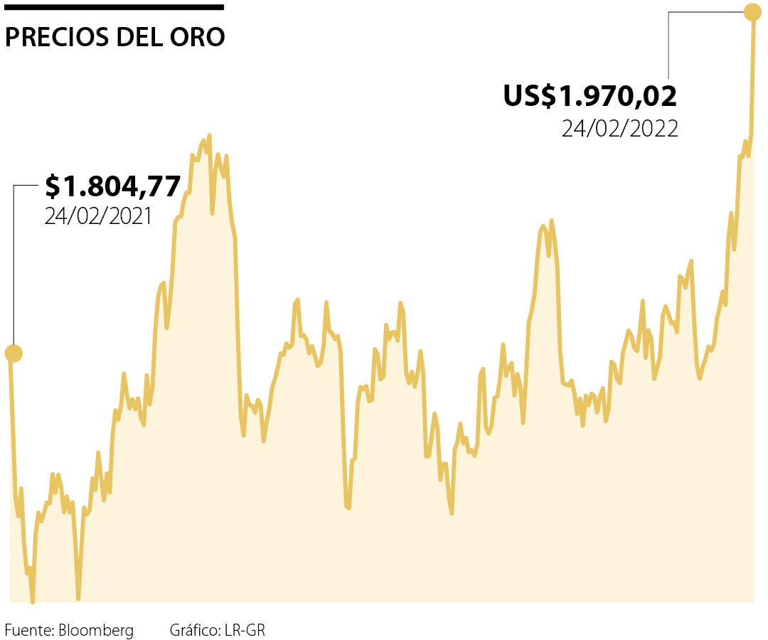 Como es natural, con esta tensión geopolítica el mercado ha puesto la mirada en los activos refugio. Así, el precio del oro repuntó, llegando a un máximo de 15 meses, pero moderándose a US$1.904 por onza al cierre de esta edición.