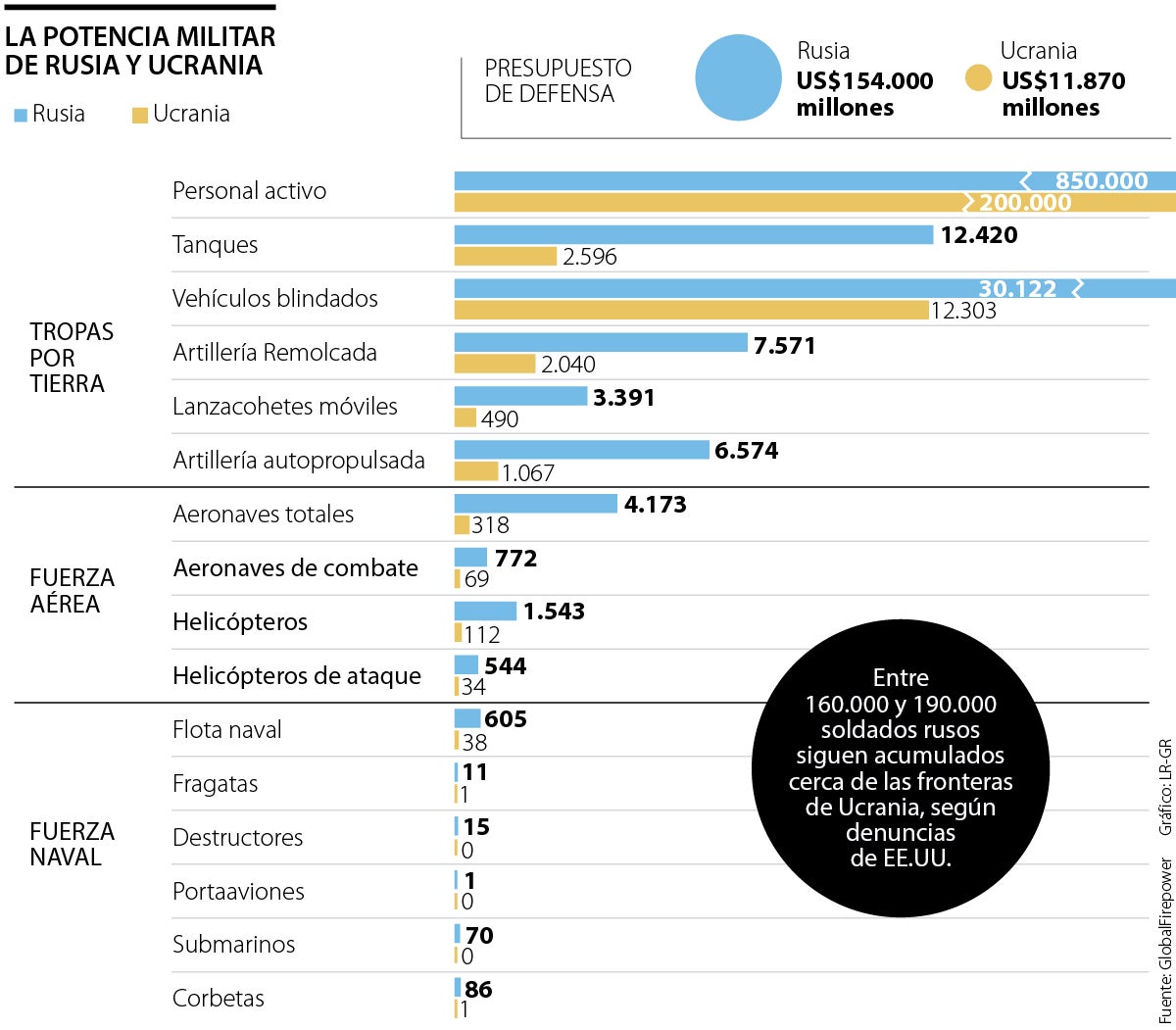 Desde Kiev se mantienen en el acompañamiento de la Otan por la diferencia numérica que hay en el poder militar de Ucrania frente al de Rusia.