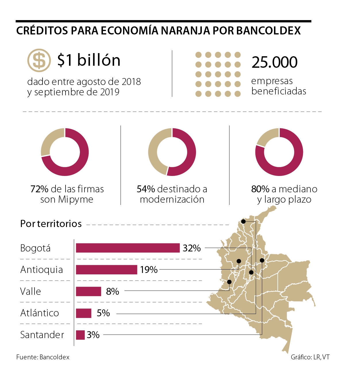Cerca de 25.000 empresas colombianas, del sector de la economía naranja, se han beneficiado con los créditos especiales otorgados a este sector por Bancóldex, entre agosto de 2018 y septiembre de 2019.