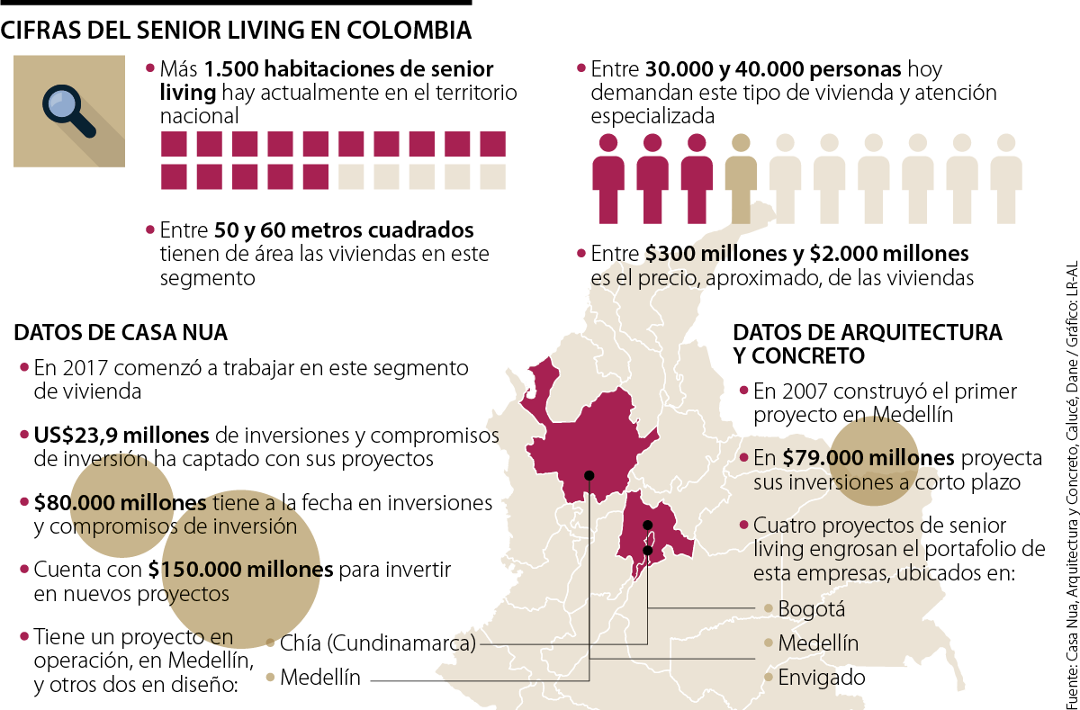 La vivienda especializada para las personas mayores de 55 años, tienen áreas de 60 m2 en promedio y costos desde $300 millones hasta $2.000 millones en promedio