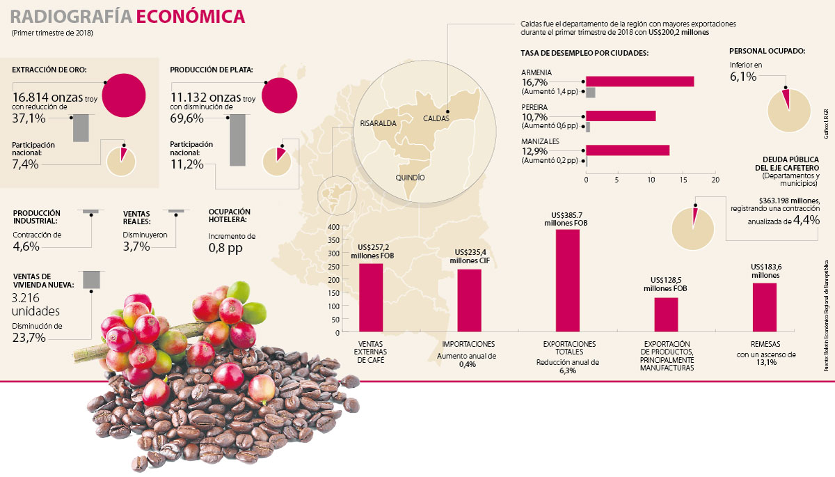 El Boletín Económico Regional del Banco de la República destacó recientemente que durante el primer trimestre de 2018, la región del Eje Cafetero continuó presentando disminuciones en algunas actividades económicas, al igual que en el mismo periodo de 2017.
