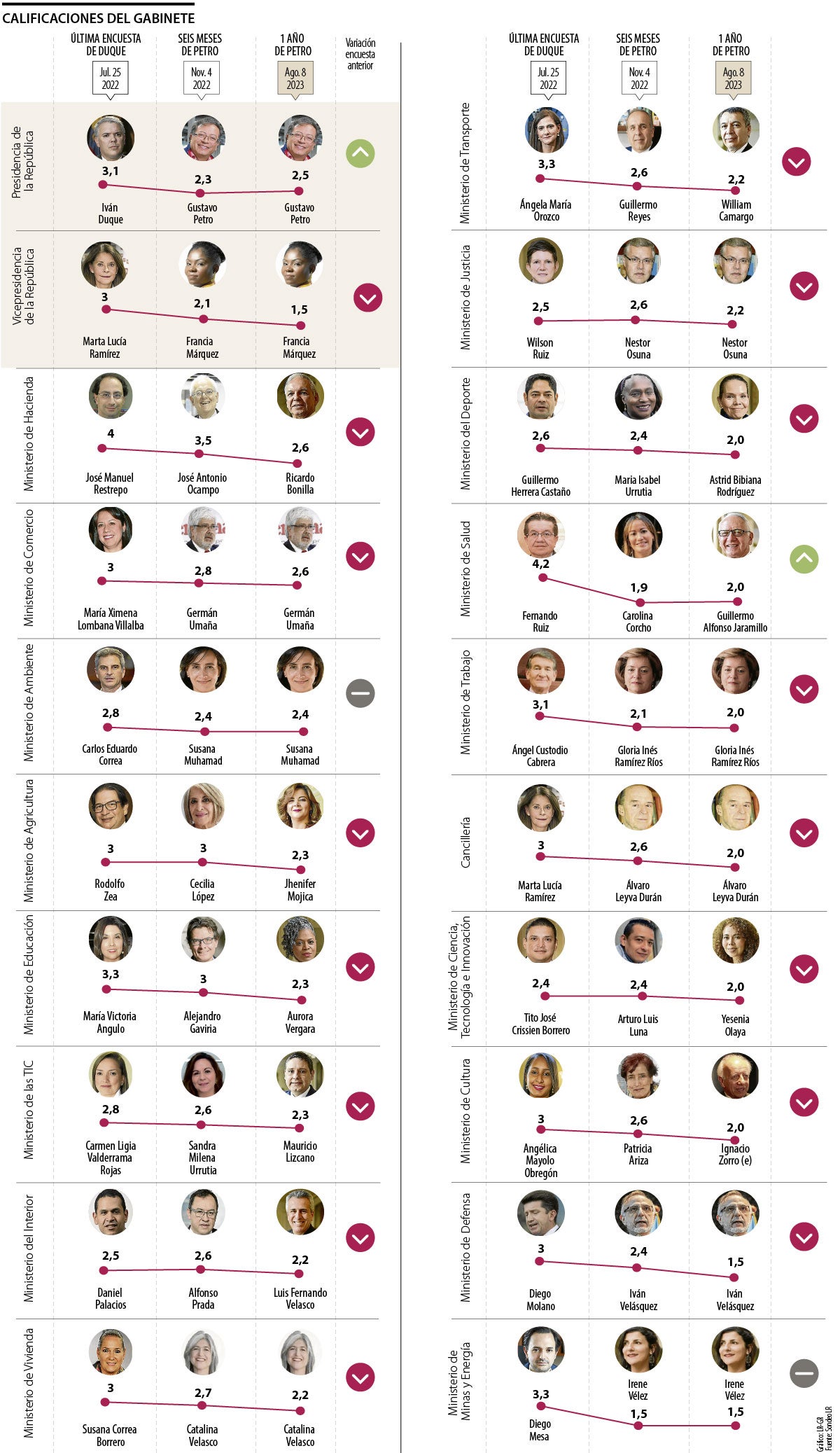 A un año de que Gustavo Petro inició su periodo presidencial, La República volvió a hacer su tradicional encuesta que reúne las calificaciones que otorgan 500 empresarios a los miembros del gabinete ministerial y a los funcionarios de la actual administración.