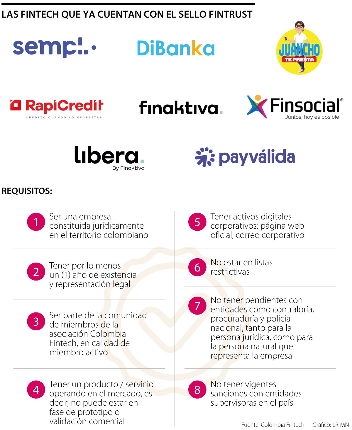 De momento, ocho fintech cuentan con este sello en Colombia: Sempli, DiBanka, RapiCredit, Libera, Juancho Te Presta, Finaktiva, Finsocial y Payválida.