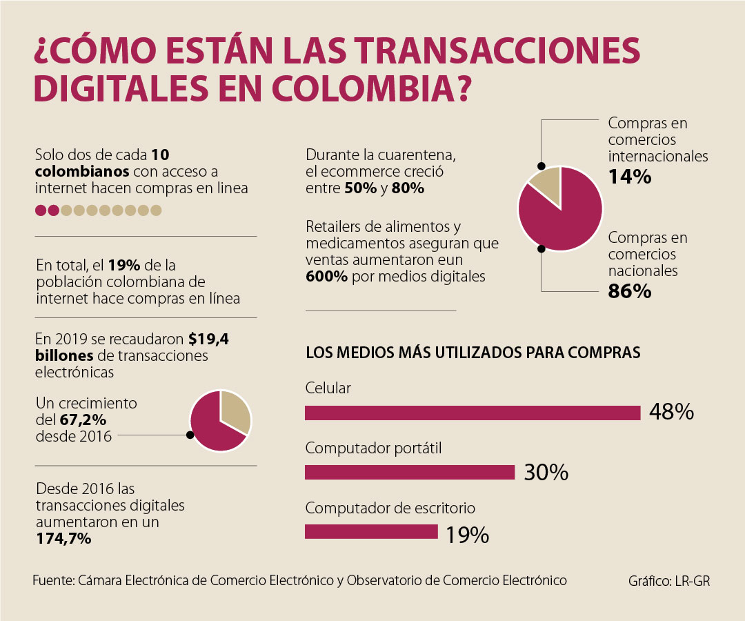 A pesar de lo anterior, según cifras de la Cámara Colombiana de Comercio Electrónico (Ccce), el e-commerce creció entre 50% y 80% durante la cuarentena y los retailers locales aseguran que los pedidos de domicilio de alimentos o farmacia han crecido por encima de 600%. También, debido al covid-19, las personas han reducido el pago en efectivo, prefiriendo las tarjetas y otros métodos menos convencionales, como los códigos QR.