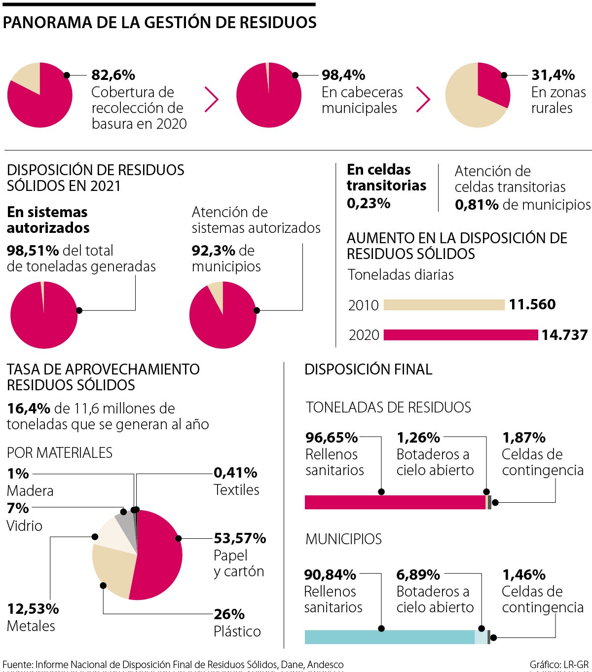 Explican que en la política pública no hay grandes ambiciones de uso con este material a excepción del aprovechamiento del gas de los rellenos sanitarios, siendo este el principal aporte del sector a las Contribuciones Determinadas a nivel Nacional (NDC) de Colombia en el Acuerdo de París. Además, la gestión de residuos se debe alinear a los compromisos suscritos en la Conferencia de las Partes (COP) y con la Ocde.