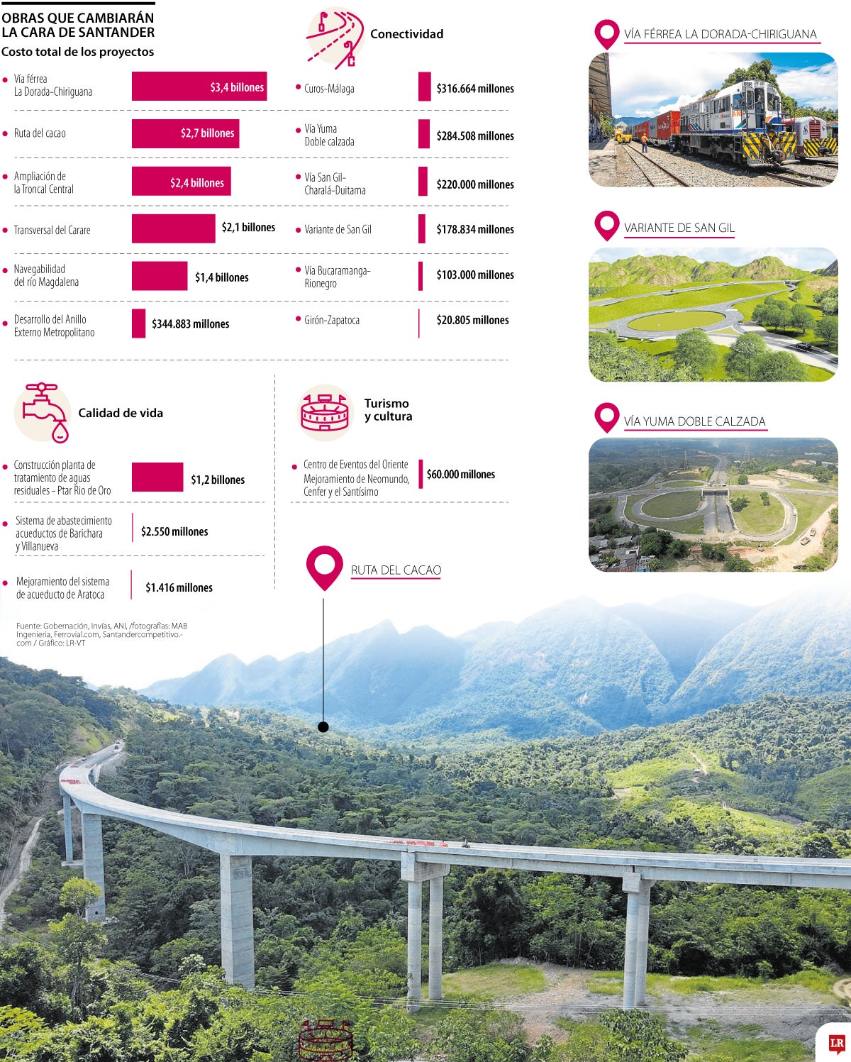 Sobre el segundo proyecto, el Gobernador de Santander, Juvenal Díaz Mateus, lo incluyó, con otras 17 iniciativas resultado de una Mesa de Acción Unificada, para incluir en el Presupuesto Nacional por su importancia estratégica para la región y el país.