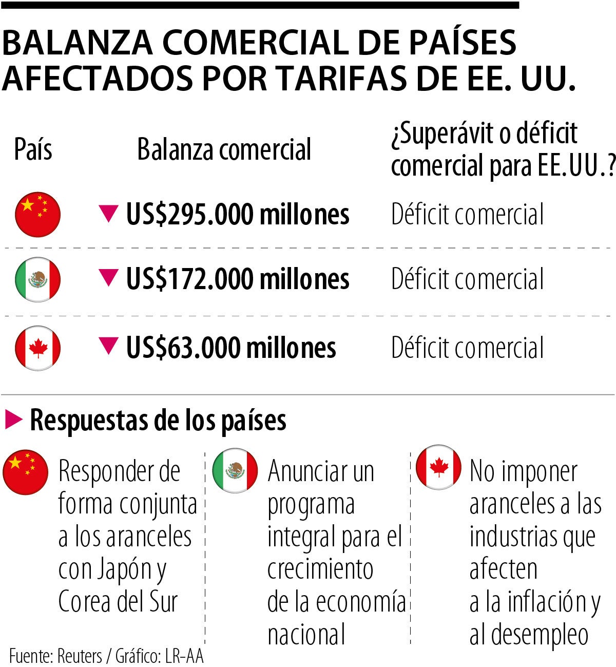 México y Canadá, dos países que no sufrieron aranceles, están dentro del listado. El país azteca está detrás de la Unión Europea, en tercer lugar, mientras que Canadá está en la octava casilla.