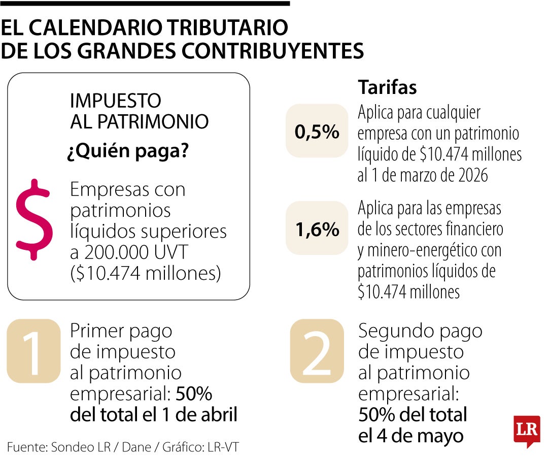 Empresas deben pagar cuotas de impuesto al patrimonio el 1 de abril y el 4 de mayo