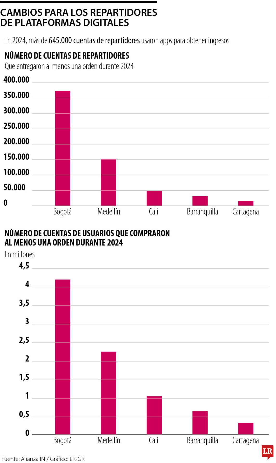 En la Conferencia Internacional del Trabajo de la Organización Internacional del Trabajo, OIT, se estableció que durante 2024, 645.068 cuentas de repartidores prestaron al menos un servicio a través de estas plataformas. Por otro lado, más de 7,5 millones de cuentas de usuarios tomaron una o más órdenes. Los comercios también fueron parte fundamental y 135.000 cuentas aprovecharon este servicio para vender sus productos. Hay que tener en cuenta que tanto trabajadores como negocios están registrados en más de una plataforma para aumentar su alcance.