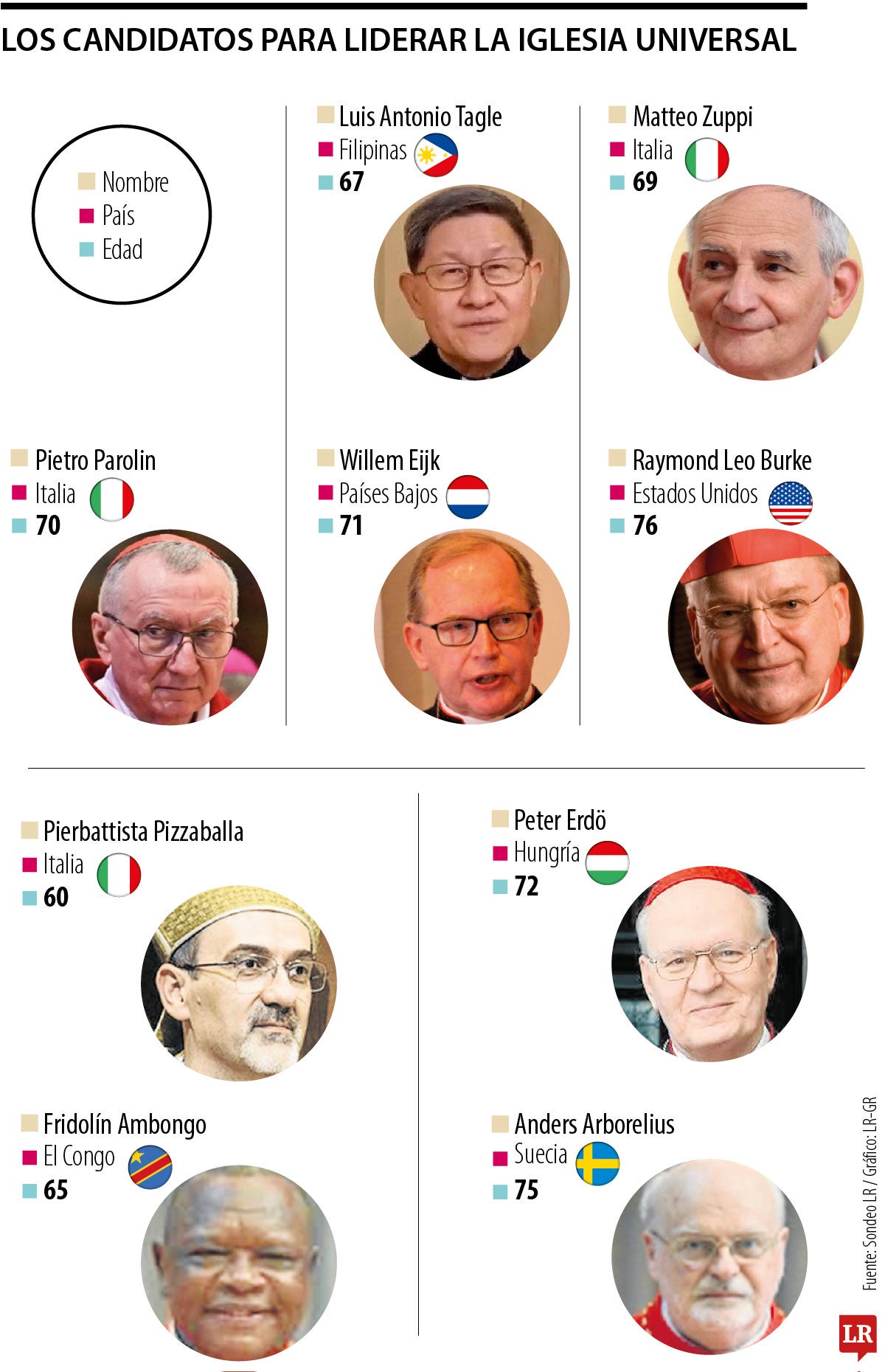 Luis Antonio Tagle, Matteo Zuppi, Pietro Parolin y Willem Eijk están entre los opcionados para suceder a Francisco; a mediados de mayo podría conocerse el veredicto