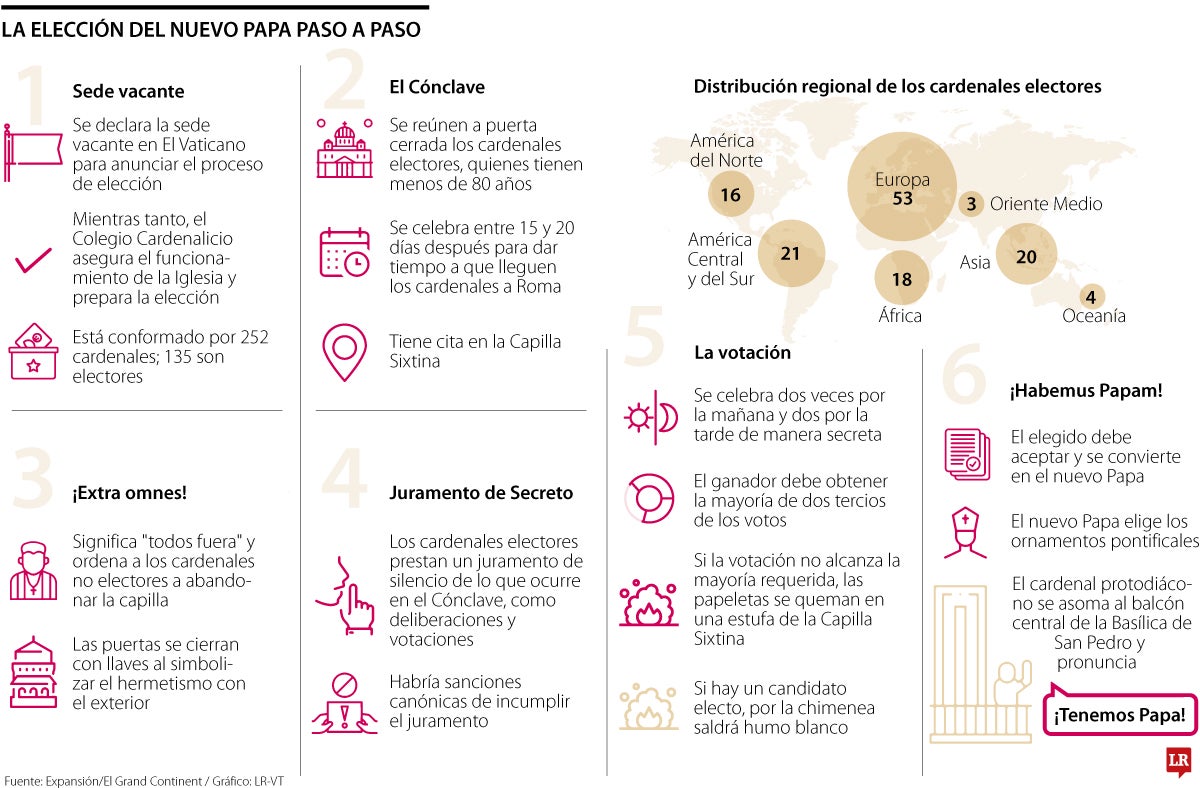 El Colegio Cardenalicio, de 135 miembros electores, deberá elegir al sucesor de Francisco a través de un proceso religioso centenario y secreto llamado Cónclave