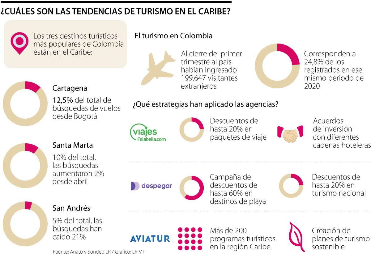 “La región Caribe ha sido una de las que ha logrado mayor reactivación durante los últimos meses, de allí que Cartagena, San Andrés y Santa Marta estén encabezando actualmente la preferencia de los colombianos para sus viajes nacionales de mitad de año”, dijo.