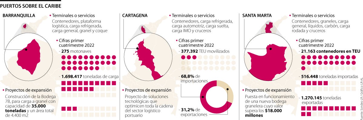Aunque aún existen rezagos de la pandemia y la crisis de los contenedores todavía afecta el comercio internacional, los puertos del Caribe colombiano han tenido un prometedor inicio de 2022. Barranquilla, Cartagena y Santa Marta muestran cifras positivas que van de la mano de la reactivación económica y de la superación de nuevos retos.