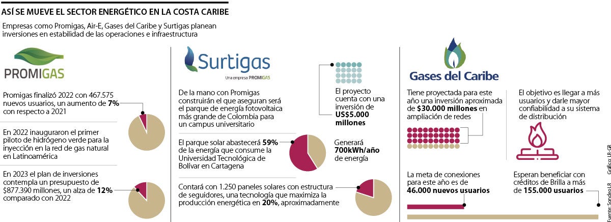 Las grandes empresas energéticas del Caribe se están moviendo en inversiones y proyectos para 2023. Con una transición energética que es protagonista en la agenda nacional, compañías como Promigas, Surtigas, Gases del Caribe y Air-E le apuestan a seguir consolidando su operación para el futuro.