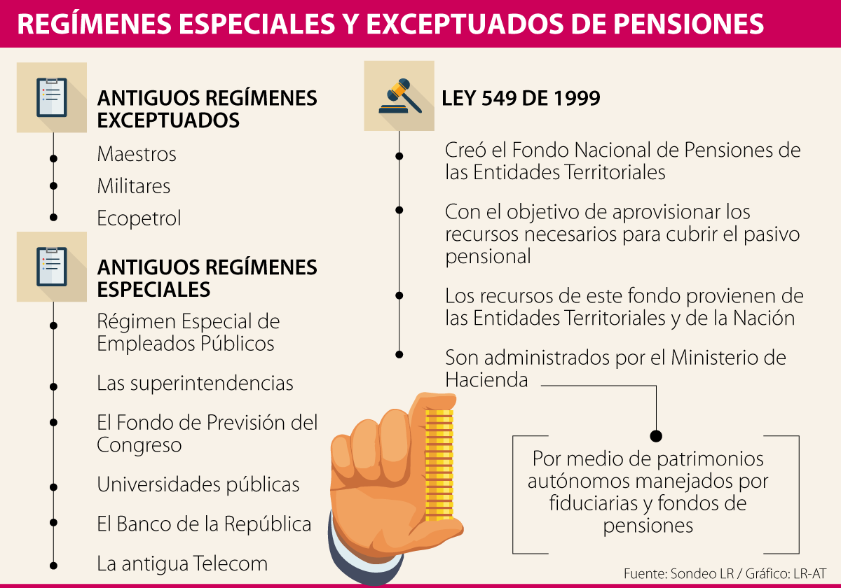 Aunque los regímenes exceptuados y especiales ya fueron eliminados de la normativa colombiana en la mayoría de los casos, el Estado aún debe asumir el pago de las mesadas de quienes cotizaron bajo estas figuras en el pasado, como por ejemplo, los trabajadores de la extinta empresa de teléfonos Telecom, de Cajanal, Coltel y otras entidades estatales, como Ecopetrol o el Ministerio Público.