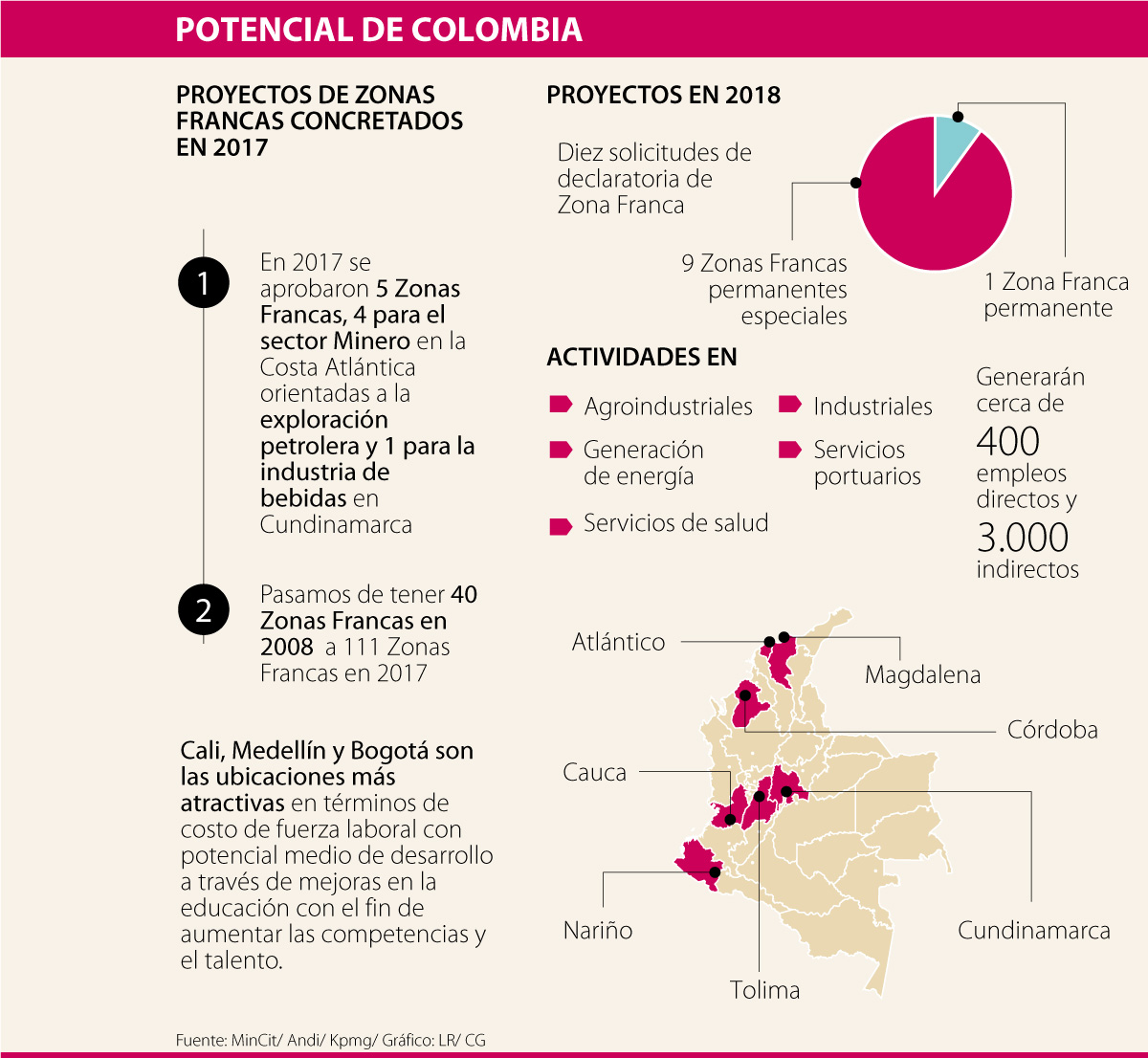 Colombia cuenta con 112 Zonas Francas en 19 departamentos. Este régimen ha creado empleo y mejorado el comercio en varios sectores de la economía nacional. Es por esto que LR hizo una radiografía sobre la implementación del decreto 659, y sobre cuáles son las Zonas Francas que más exportan y el potencial del país para que estos espacios de comercio exterior sigan en aumento.