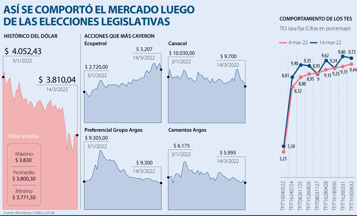 Los resultados de las consultas también generaron tranquilidad en los mercados. Los expertos explicaron que, aunque Gustavo Petro ganó en la coalición del Pacto Histórico, se espera que haya segunda vuelta en las elecciones presidenciales.