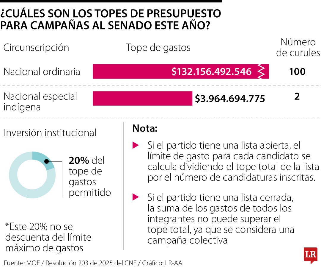 Para dimensionar la cifra de dinero que tienen permitido gastar legalmente, se tratan aproximadamente de 75,478 salarios mínimos legales vigentes y eso si no reciben inversión institucional. El Consejo Nacional Electoral definió este presupuesto a través de la Resolución 203 de 2025, donde también estipuló cómo se debe medir el límite de gasto para las listas abiertas y cerradas de los partidos.