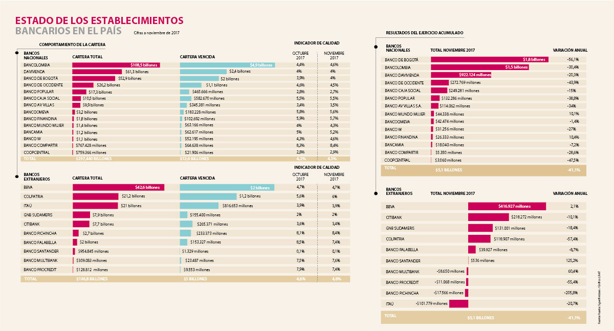 Lo anterior según comentó el presidente de Bancolombia, Juan Carlos Mora, “se reflejaría al cierre de 2017 en las utilidades de los bancos, y del sector en general, los cuales estarían afectados por los altos niveles de aprovisionamiento”.