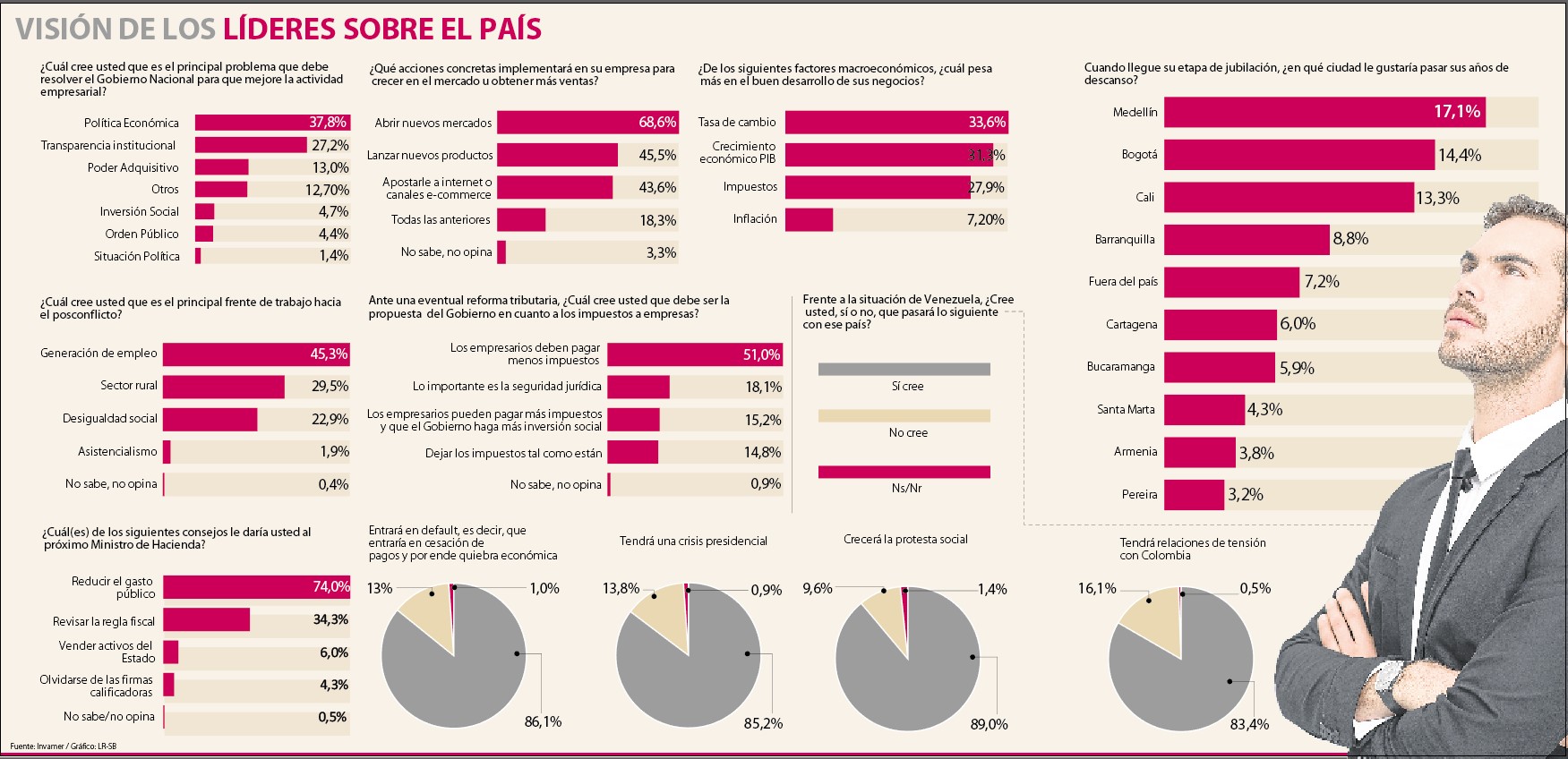 Otro tema que preocupa, es la transparencia institucional, que deriva en la corrupción. De los encuestados, 27,2% dijo que ese es el principal problema que debe resolver el Gobierno Nacional para que mejore la actividad empresarial. Seguido de poder adquisitivo 13%; inversión social 4,7% y orden público 4,4%.