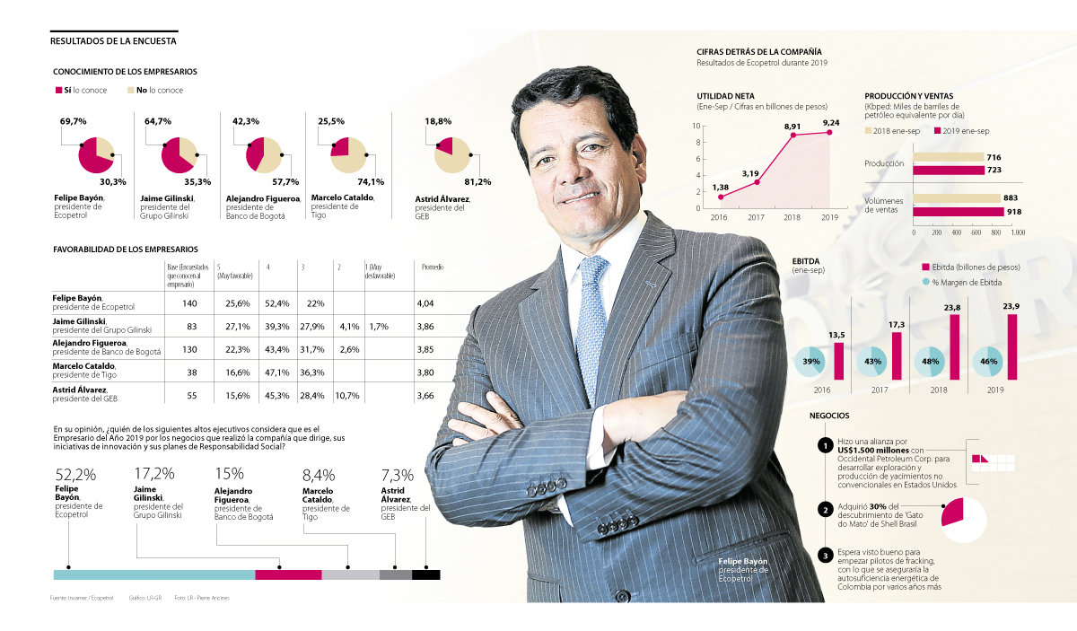 En la edición número 17 del Empresario del año, LR otorgó la distinción a Felipe Bayón Pardo, presidente de Ecopetrol, por los resultados que la compañía logró hasta septiembre del año pasado, cuando alcanzó utilidades por $9,4 billones.