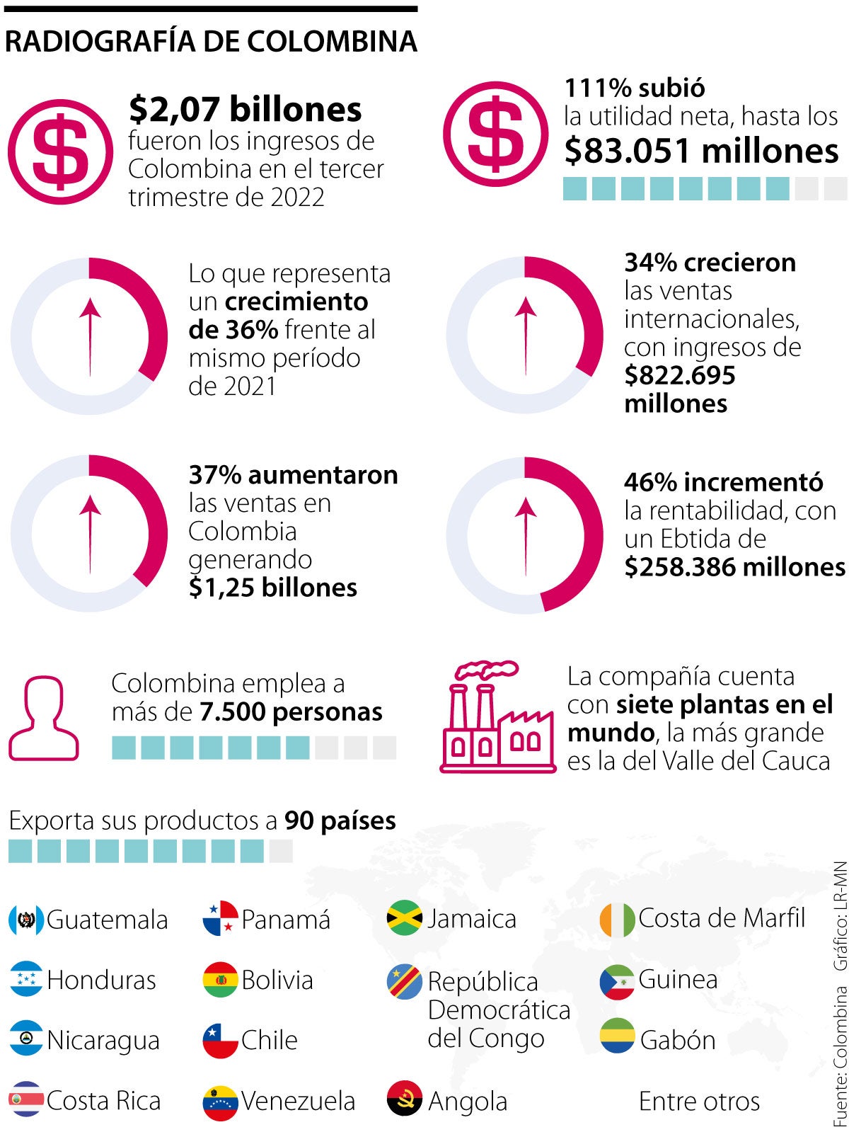 Colombina es una de las compañías más antiguas del país. Vende alrededor de US$690 millones, participa en 20 categorías de alimentos, atiende a más de 750.000 clientes, llega a más de 85 países y cuenta con operaciones propias en 14 naciones.