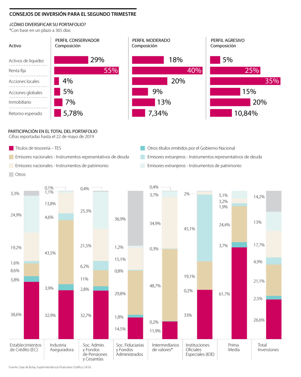 Para aquellos con un perfil moderado, las inversiones de renta fija ocupan 40% del portafolio, seguidas de acciones locales (20%) que al momento tienen mejores proyecciones que las globales.